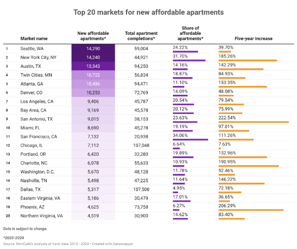 - The Phoenix metro area completed 4,625 affordable apartments between 2020 and 2024.